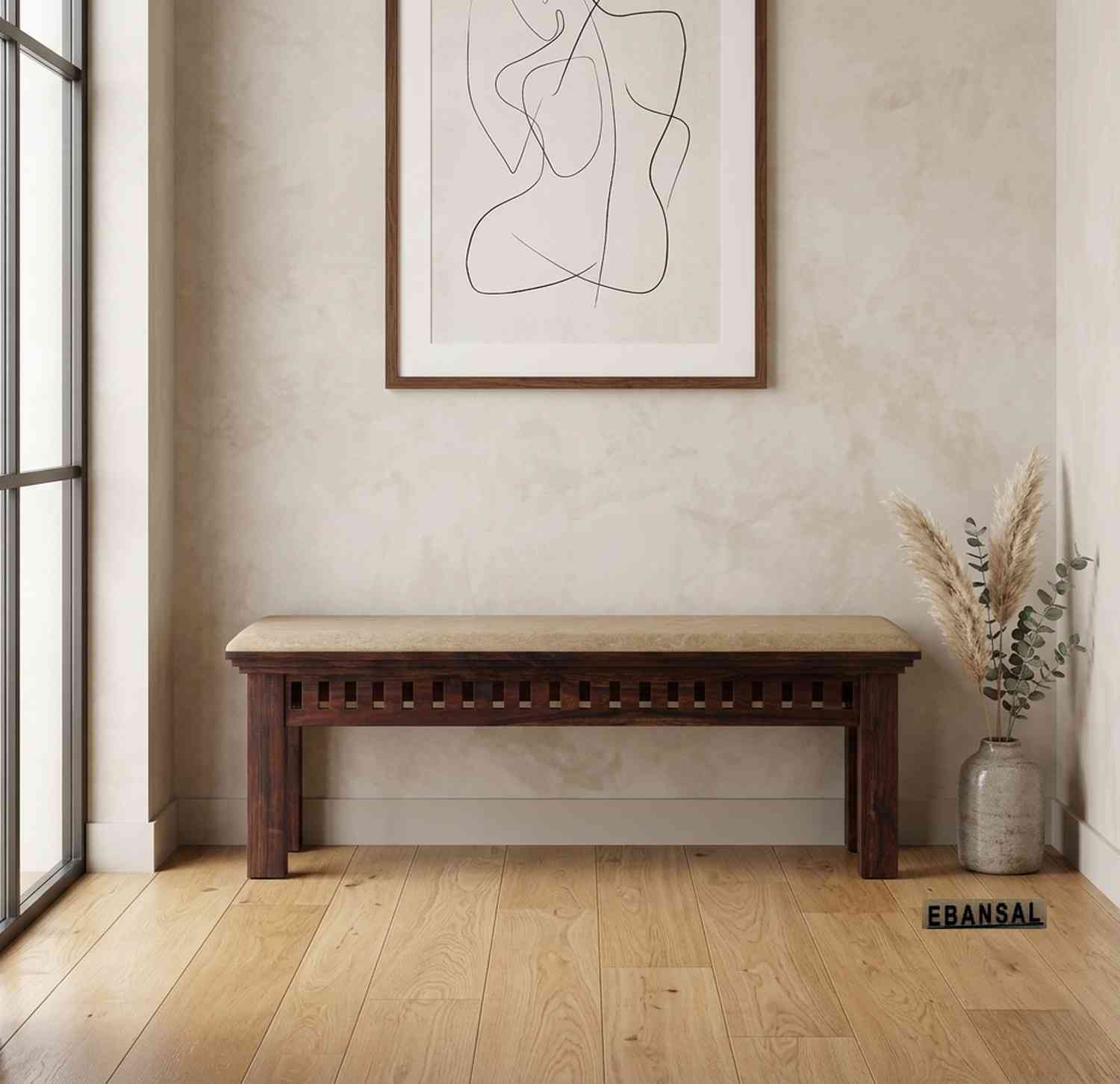 Amer Solid Sheesham Wood 2 Seater Bench (Walnut Finish, With Cushion)