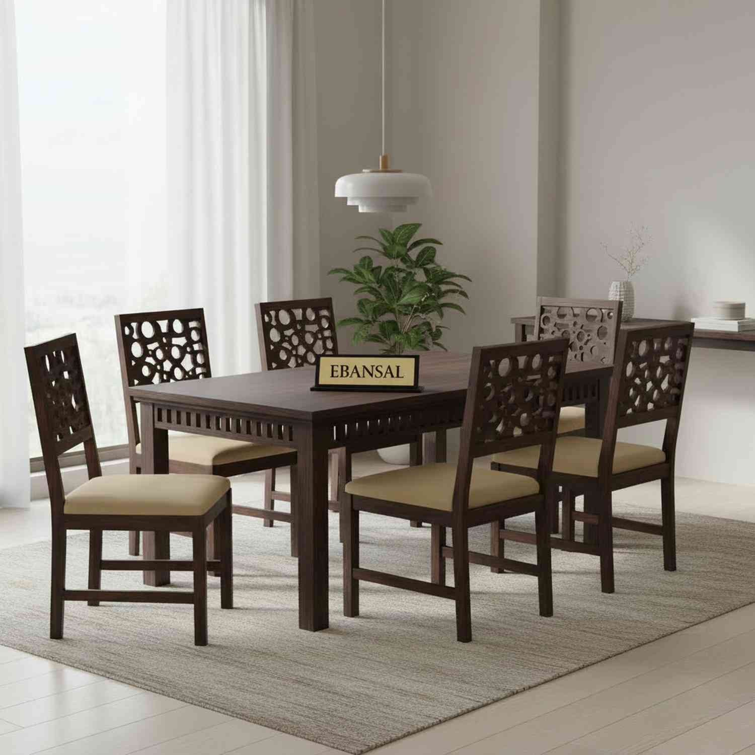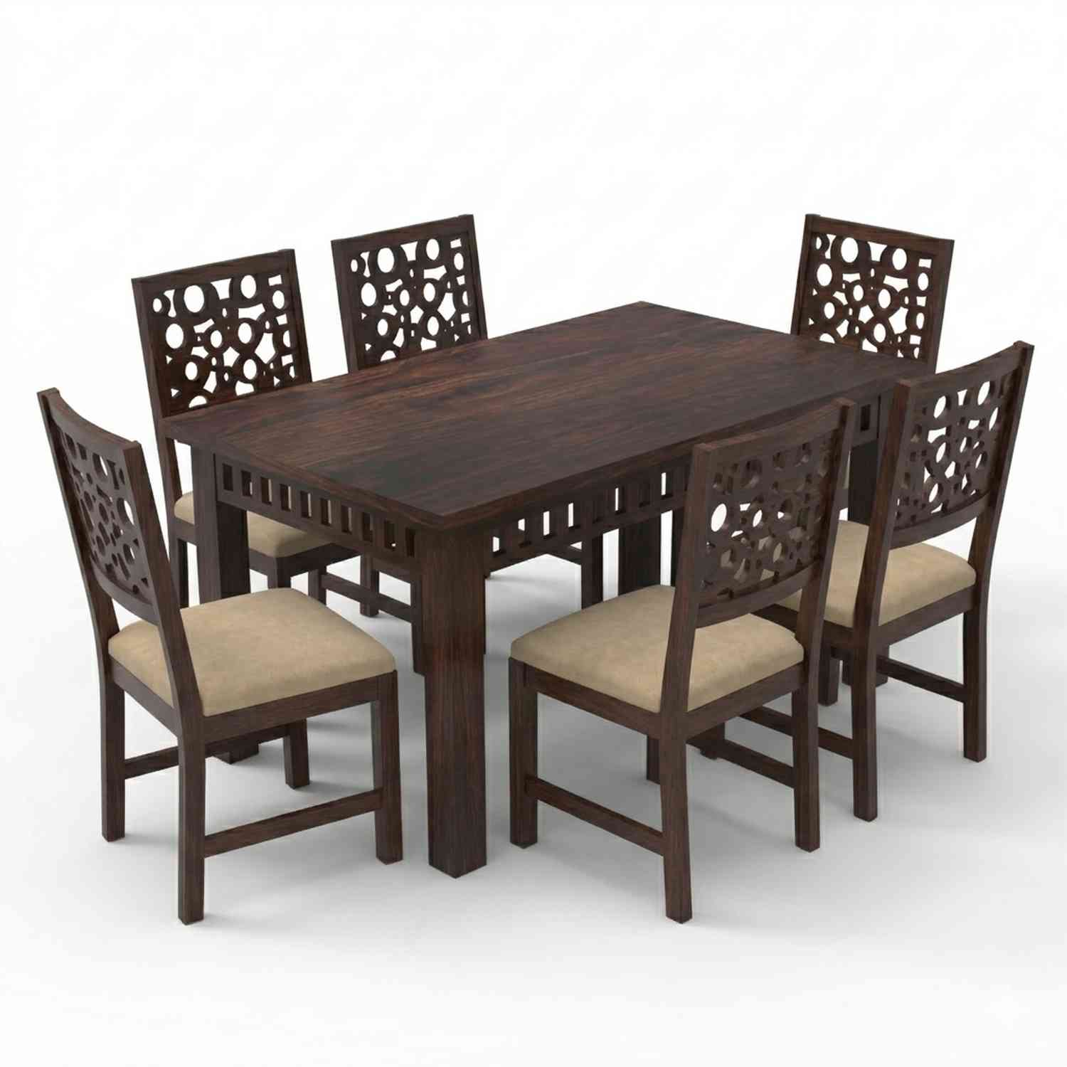 Rubikk Solid Sheesham Wood 6 Seater Dining Set (With Cushion, Walnut Finish)